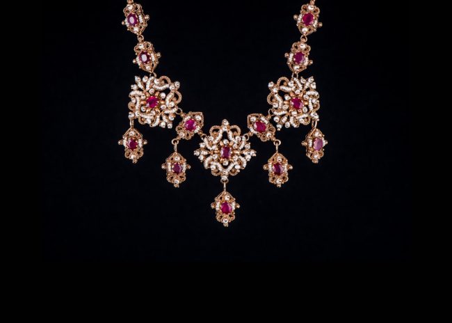K9 gold micropearls necklace with kt.13.50 rubies, cm.46 Available in sets with bracelet Made in Italy – second half of the 1800s