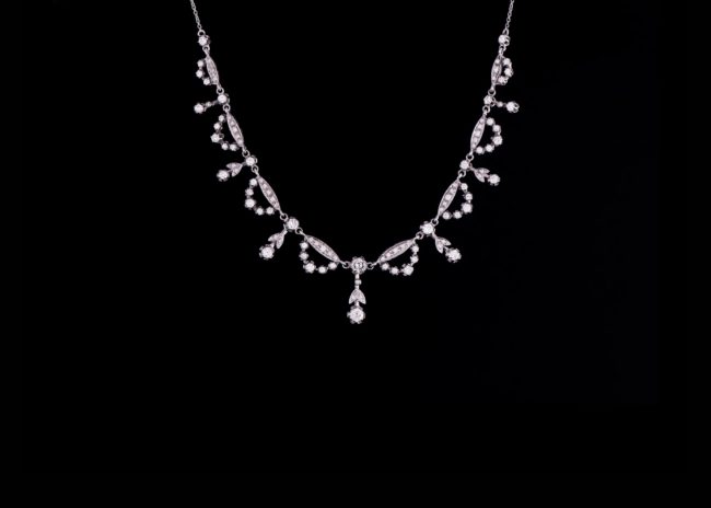 Collier in oro bianco 18K Brillanti di kt.3,65 cm.41 Anno di creazione: 1910 ca.