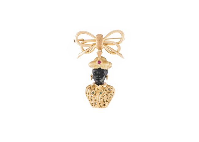 Spilla moro di venezia in oro k18 Ebano, rubino e smeraldi Anno di creazione: 1900 ca.