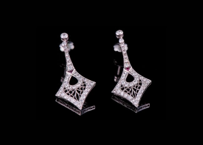 Platino, brillanti e rubini – lunghezza cm.5 Anno di creazione: 1960 ca.
